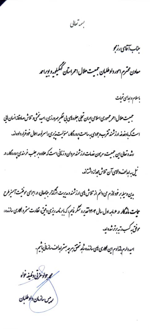 کسب رتبه برتر کشوری توسط معاونت داوطلبان هلال احمر کهگیلویه وبویراحمد در طرح حمایت ماندگار